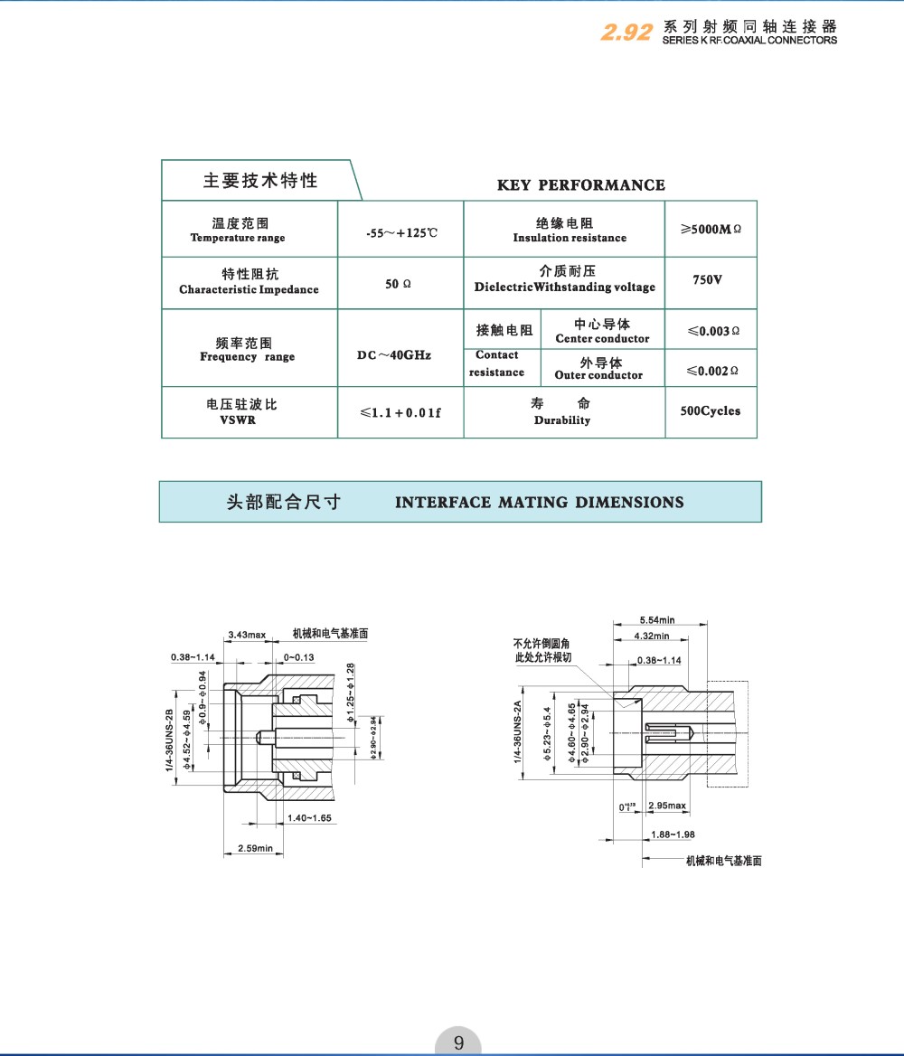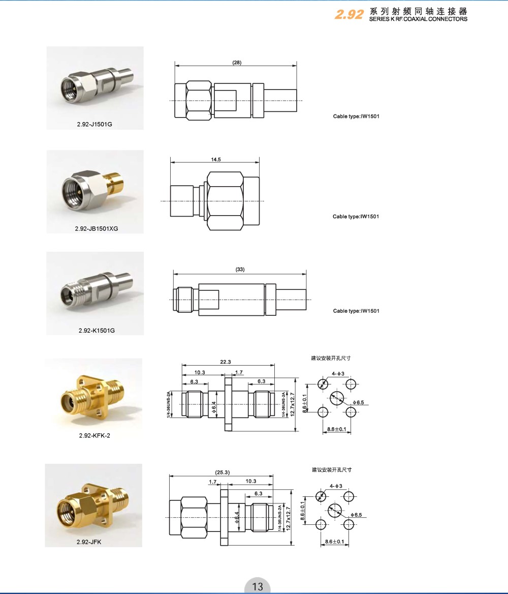 商品类型:2.92 系列射频同轴连接器