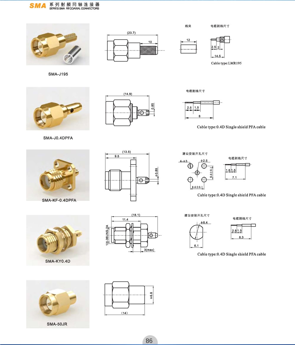 SMA射频同轴连接器具有体积小、频带宽、机械电气性能优越、可靠性高等优点,是应用最广的射频连接器。广泛应用于微波通讯,航天航海,武器系统及微波测量设备等领域,