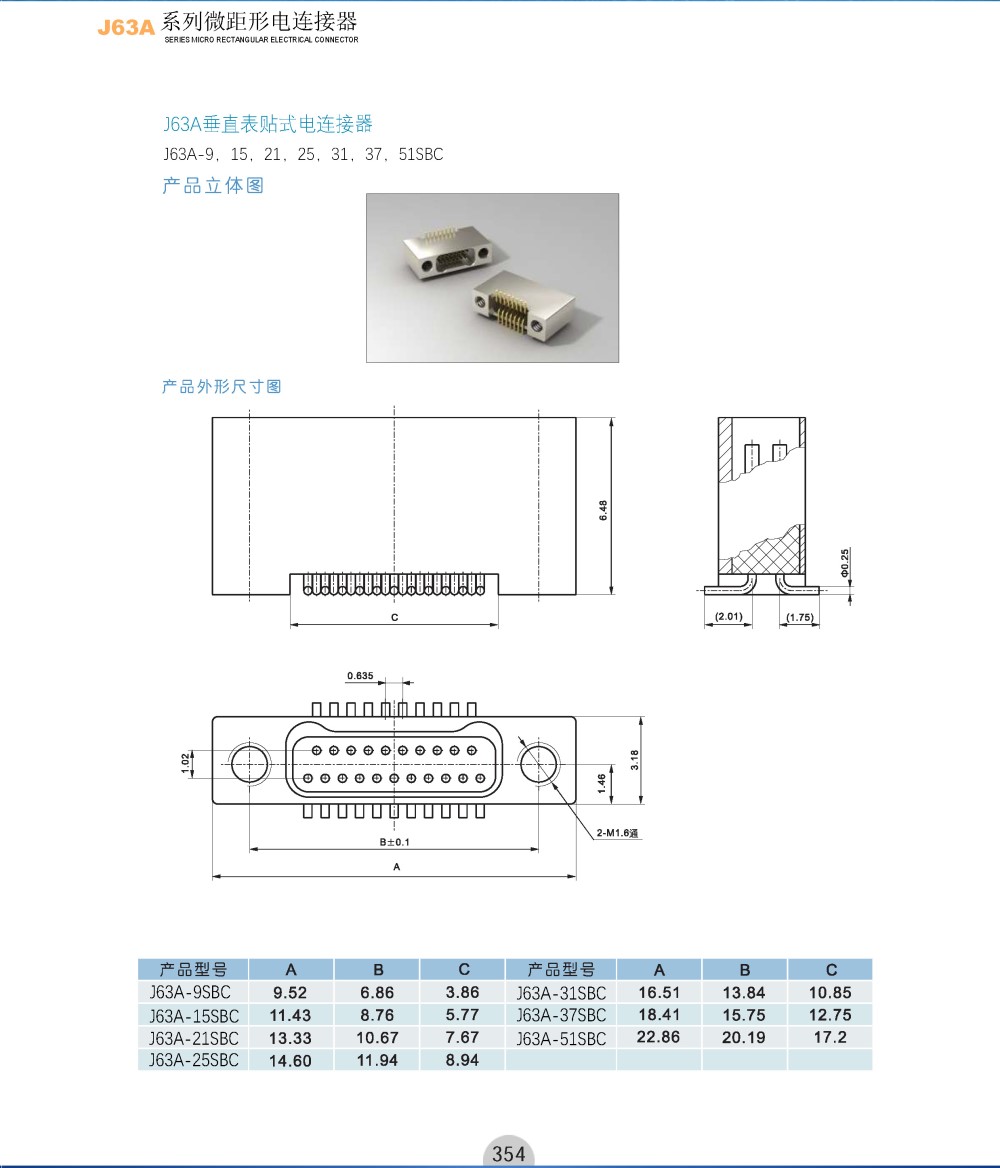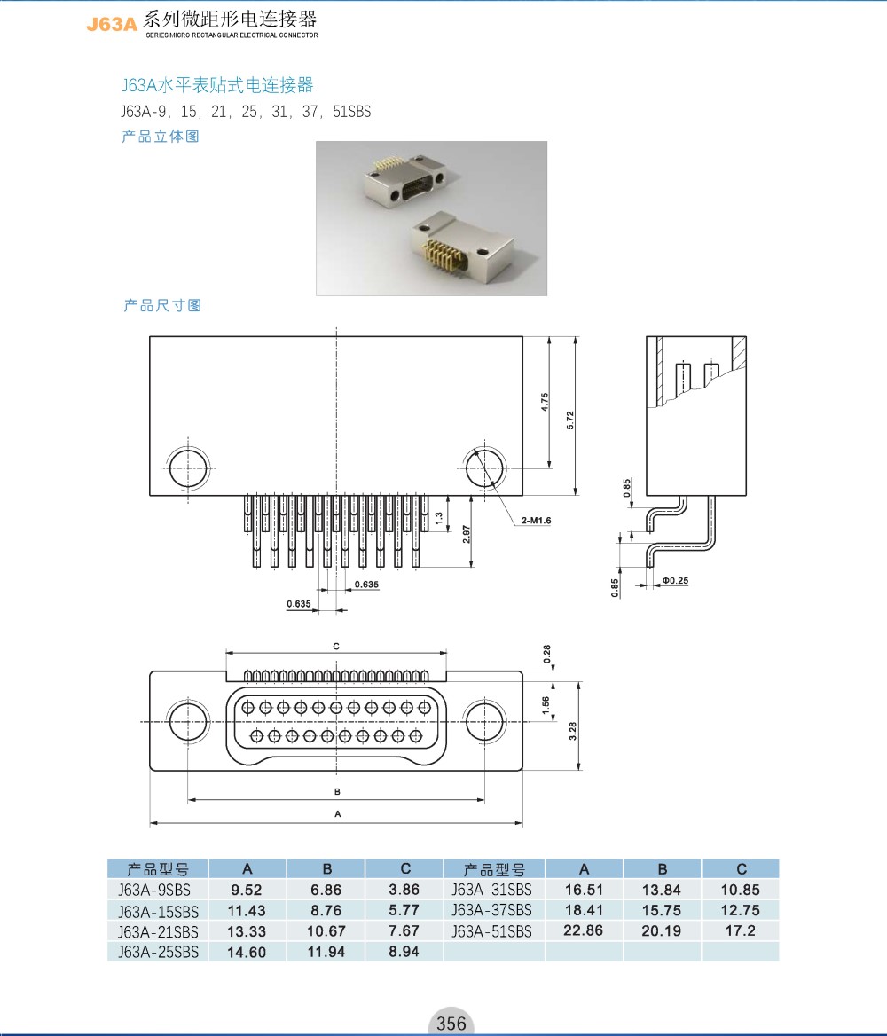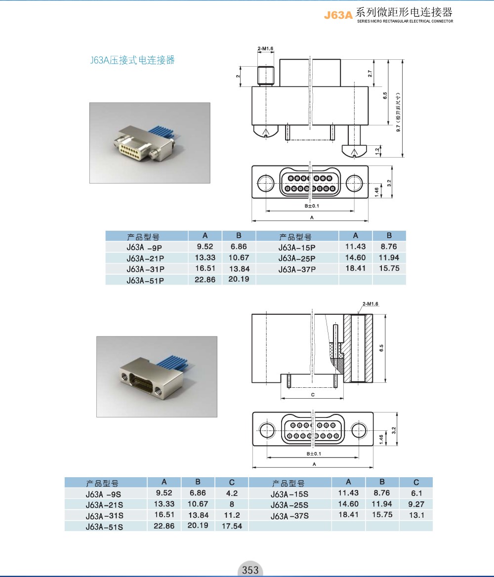 商品类型:J63A系列微距形电连接器